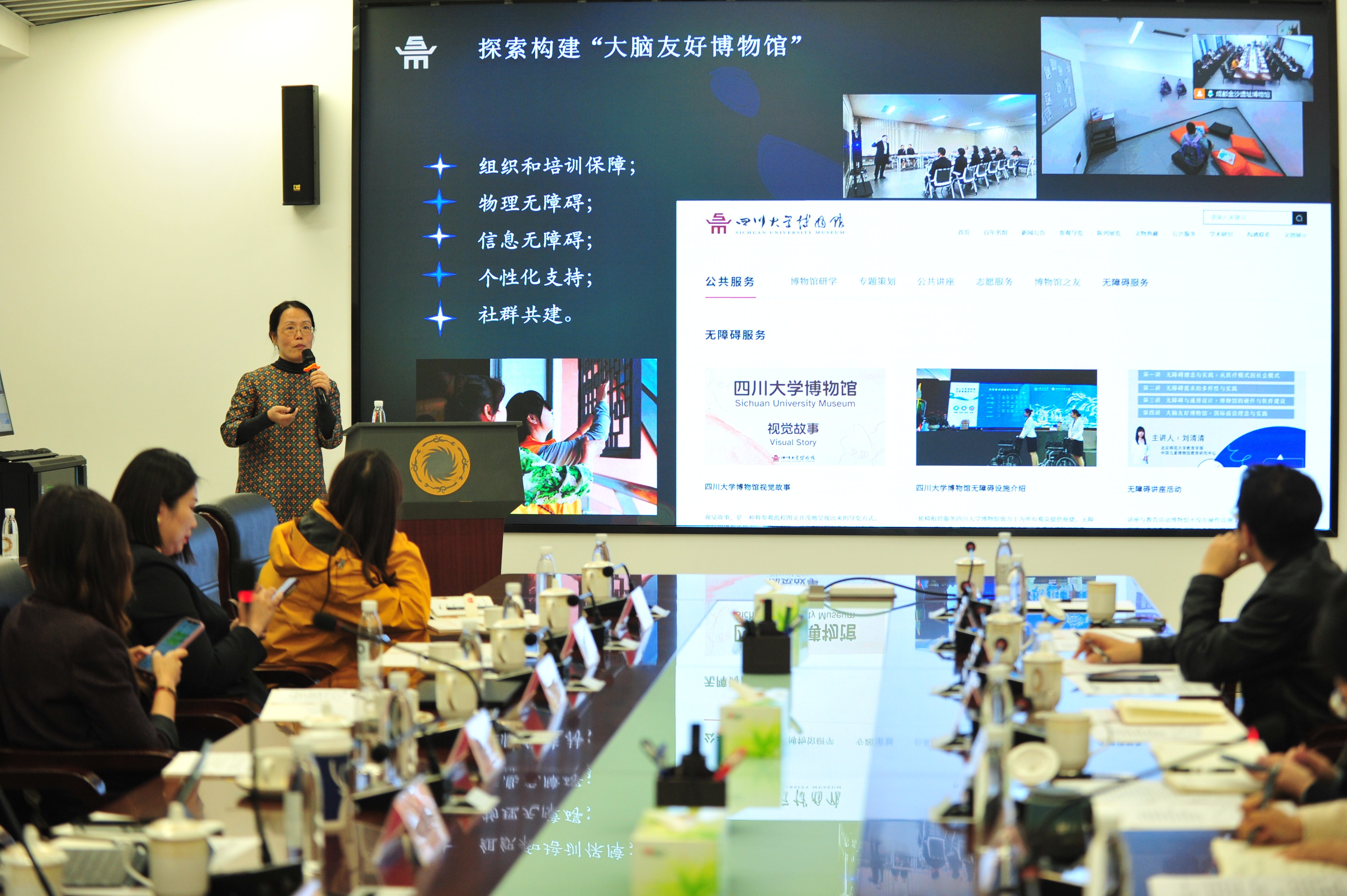 来自国内外的博物馆学界专家、特殊教育领域学者和三星堆博物馆、四川大学博物馆、成都博物馆、武侯祠博物馆、杜甫草堂博物馆、成都自然博物馆(成都理工大学博物馆)等文博单位代表齐聚一堂,就博物馆无障碍建设和文化服务实践展开交流分享,为成都文博事业的包容性发展提供智力与前沿理论支持。