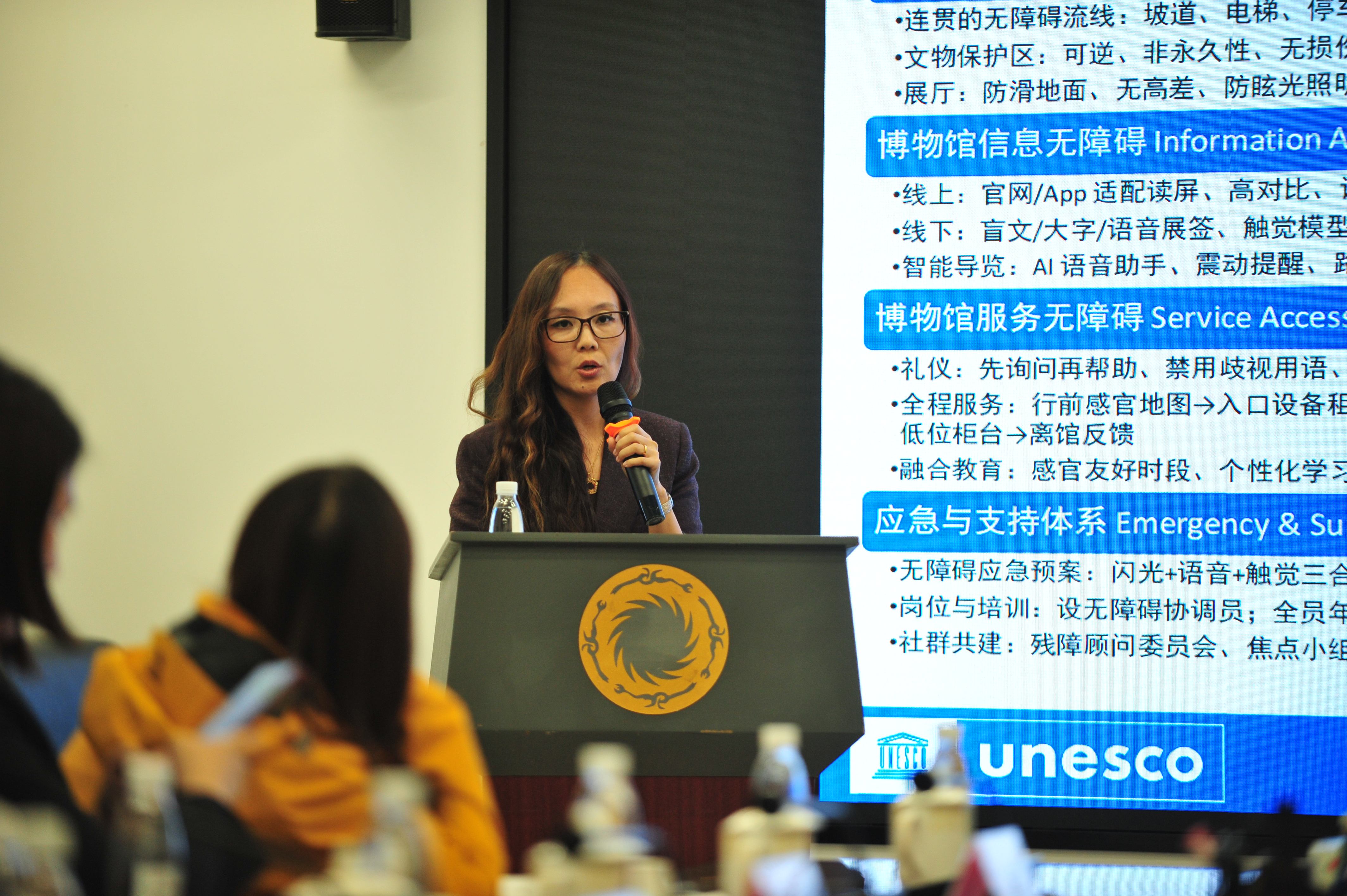 此外,四川大学博物馆和金沙遗址博物馆也在活动中分享了本馆的无障碍建设策略和服务创新成果,展现了成都文博界在此领域的深耕与突破。四川大学博物馆副馆长周静介绍了该馆打造“大脑友好博物馆”的创新实践和探索,强调不仅要关注传统的无障碍设施,同时要注重将神经科学原理应用于服务设计中来优化观众体验。金沙遗址博物馆专职副书记郑漫丽则依托金沙多年深耕无障碍建设做出的努力,以及与残障人群建立的深厚友谊,进一步提出了空间无障碍、信息无障碍、服务无障碍的博物馆优化策略。