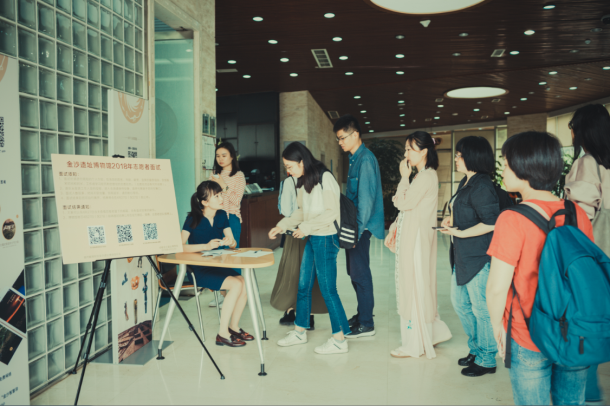 越来越多的人知道志愿者是支持博物馆事业发展的重要社会力量。他们介于博物馆专业人员和普通观众之间,承担了一个向普通观众传播博物馆专业文化理念、帮助推动博物馆发展建设的重要作用。世界各地的博物馆志愿者工作蓬勃开展,博物馆志愿者队伍也在发展壮大。同时《国家宝藏》节目播出后,志愿者更是成为了热门话题,前几天故宫博物院招文物医院志愿者,871名报名者,最终只有15位幸运儿能成为文物医院志愿者,入选难度堪比艺考。金沙遗址博物馆于4月22日也进行了2018年的志愿者面试,本次面试博物馆一共收到327份志愿者报名申请表,我们通过网络报名筛选和馆内面试,两轮以后,最终有24位伙伴进入博物馆预备志愿者名单。