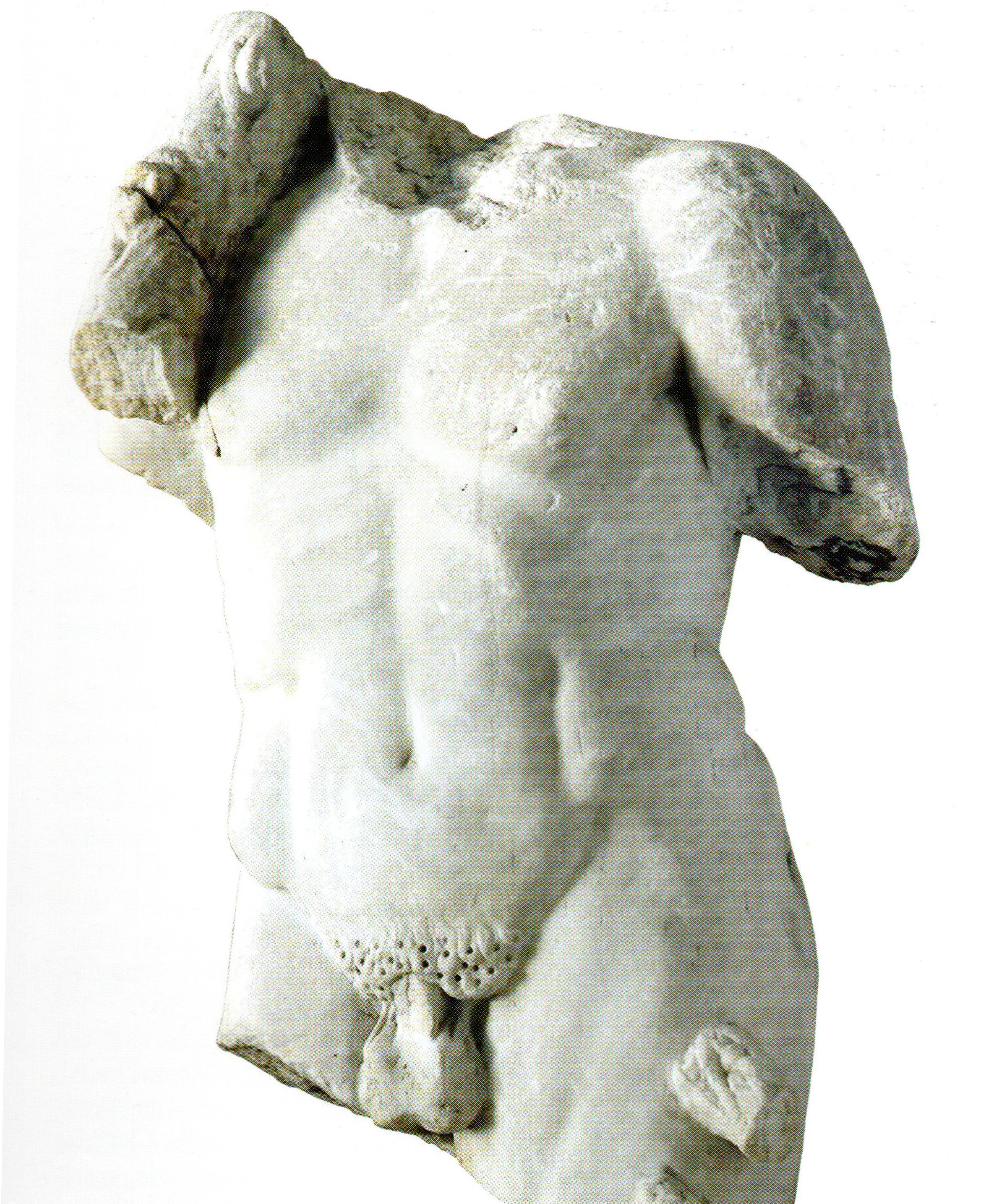 这件大理石雕塑的原型为古典时代(公元前5-4世纪)的青铜雕像。雕像勾勒出体格壮硕的人体,尽管头部和大部分手臂和腿部缺失,但肌体结构突出。